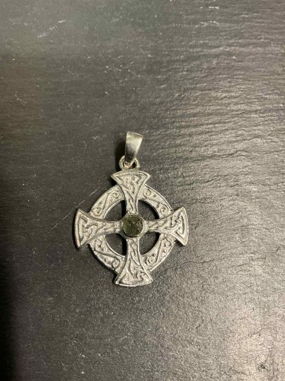 Moldavit (Tektit) Keltisches Kreuz in Silber